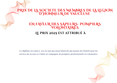 Agir pour l'insertion professionnelle des jeunes apprentis, en  2007 la SMLH de Vaucluse a créé le Prix des Apprentis de la Légion d'Honneur. Ce Prix désormais étendu à l’ensemble des sections de la SMLH, favorise l'acquisition d'autonomie et l'insertion professionnelle de jeunes suivant une formation professionnelle en alternance dans un centre de formation du Vaucluse.